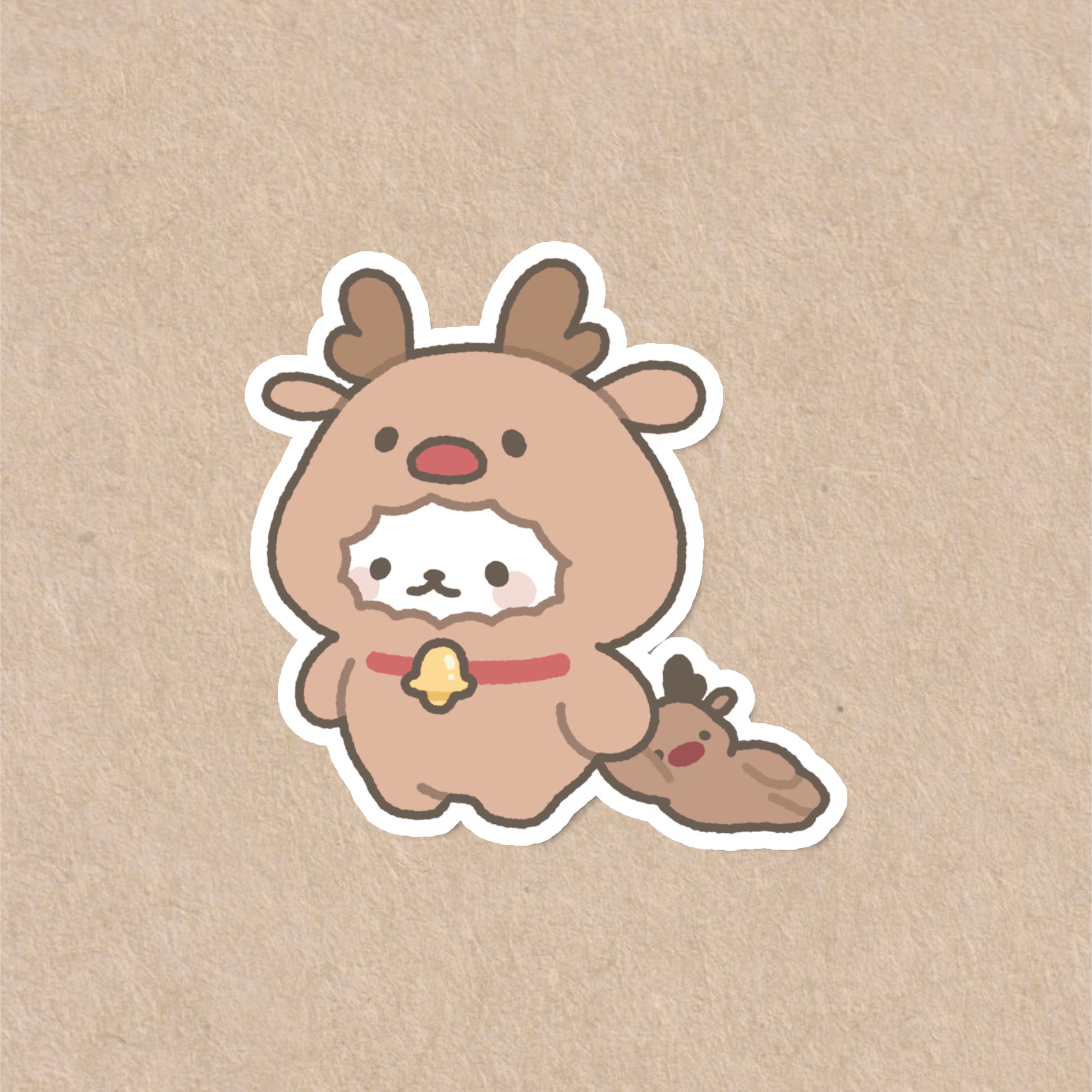 A cute bunny wearing a cute reindeer outfit holding onto a cute plushie? Say no more ✋🏻🦌